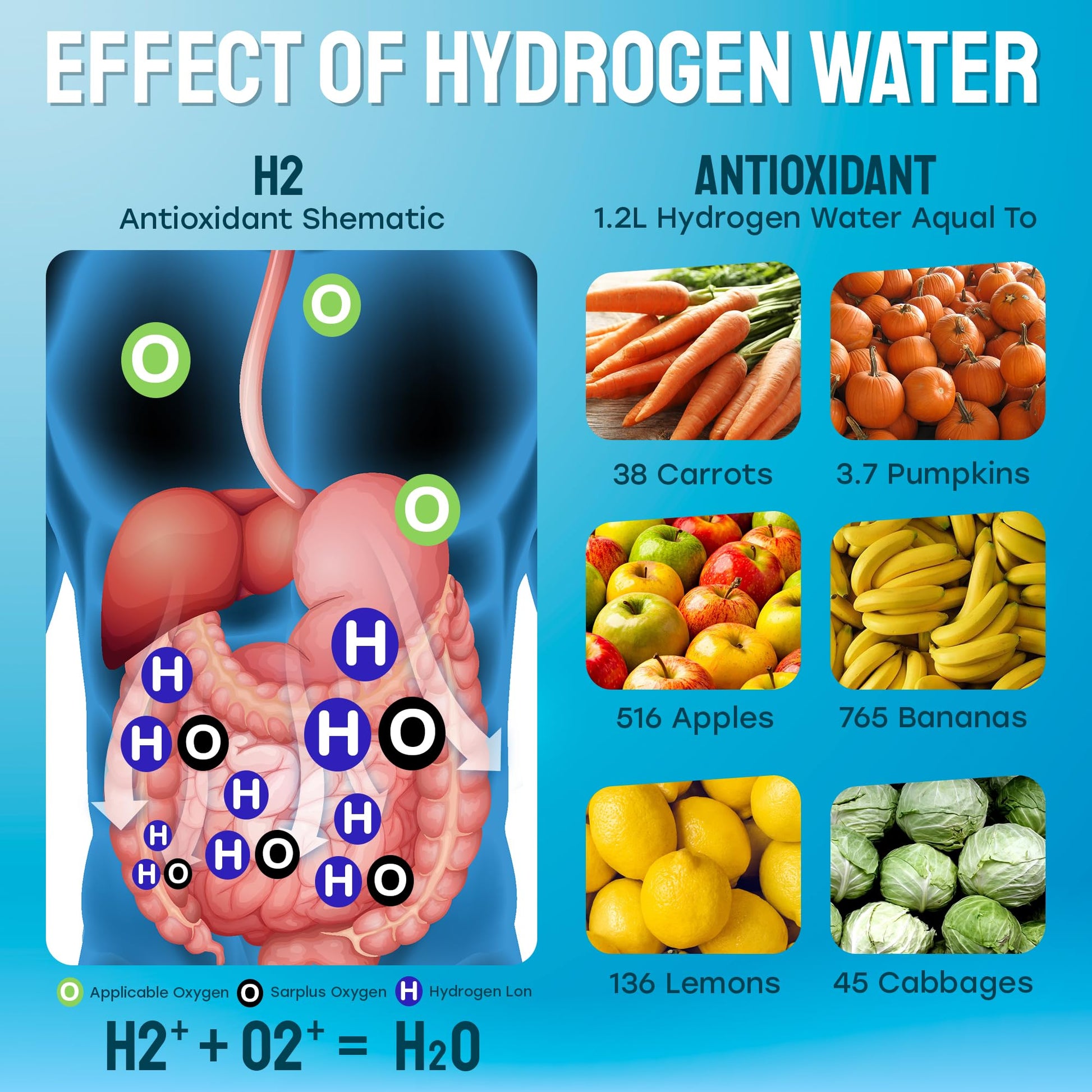 - GREAT GIFT FOR YOURSELF OR OTHERS: Hydrogen water, when consumed regularly, aids in alleviating muscle soreness, minimizing body fatigue post-exercise, mental clarity, and overall well-being. An excellent present for loved ones or yourself.