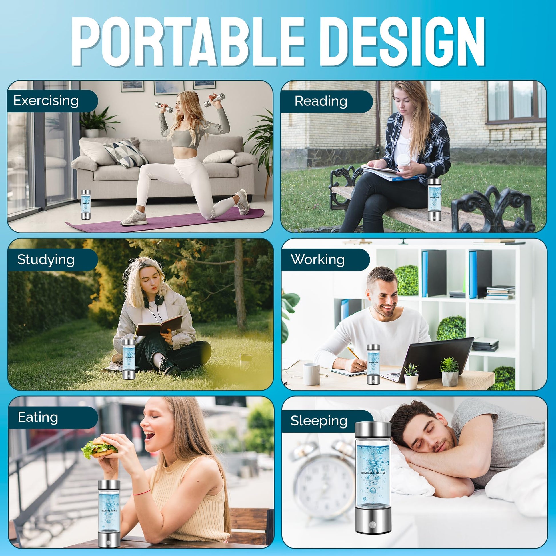 - ENHANCED WATER PURITY: The Diamond House Hydrogen Water Bottle generator completes water electrolysis in just three minutes. It transforms regular drinking water into hydrogen-ion-rich alkaline water, effectively minimizing oxidative stress. It works well with various water qualities, addressing the issue of residual hydrogen and oxygen post-electrolysis.