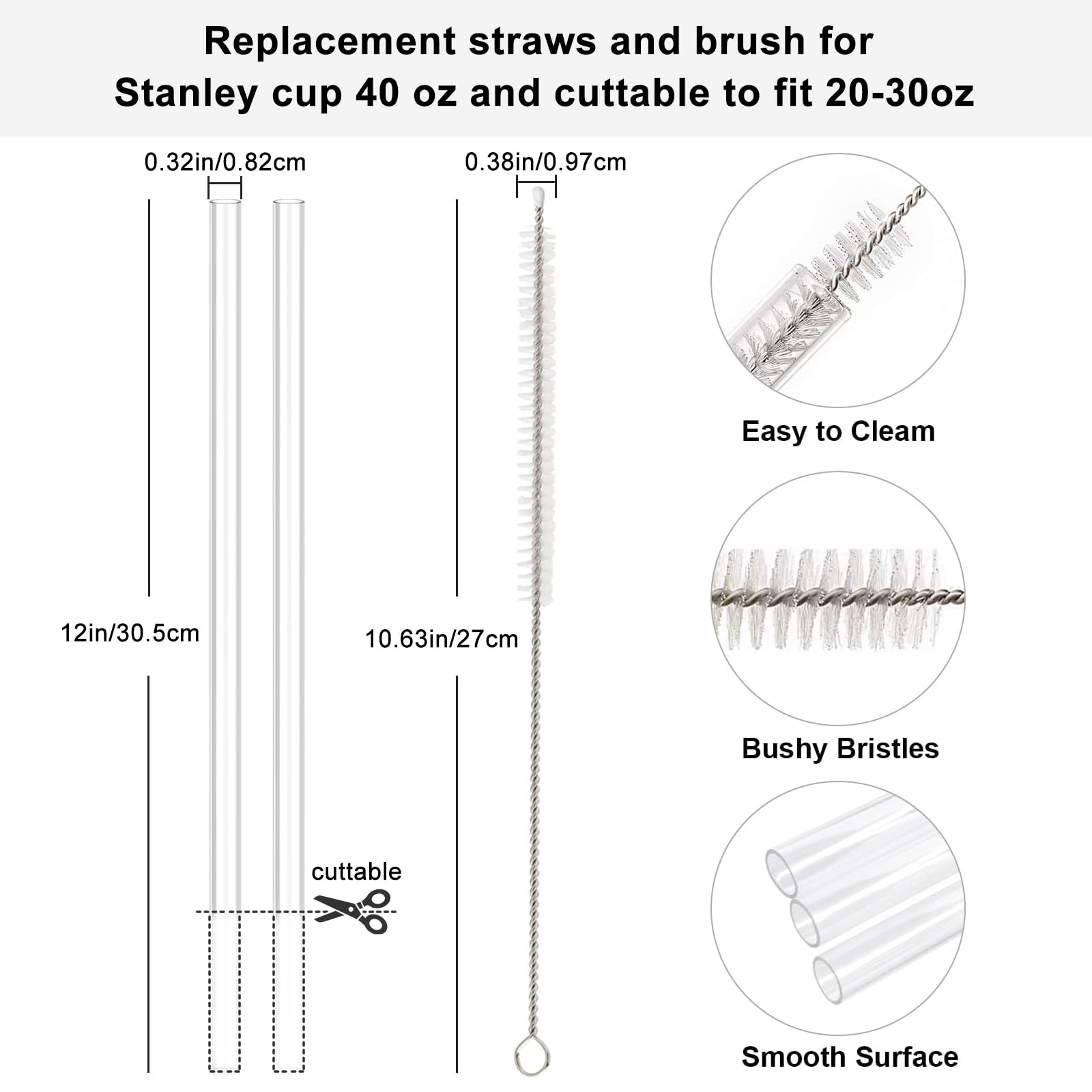 - 【Stanley Cup Accessories】Straw toppers,Straws and boots for stanley cup 20-40 oz, reusable straw covers are designed for use with stanley straws that have a diameter of 0.4 inches (10 mm).