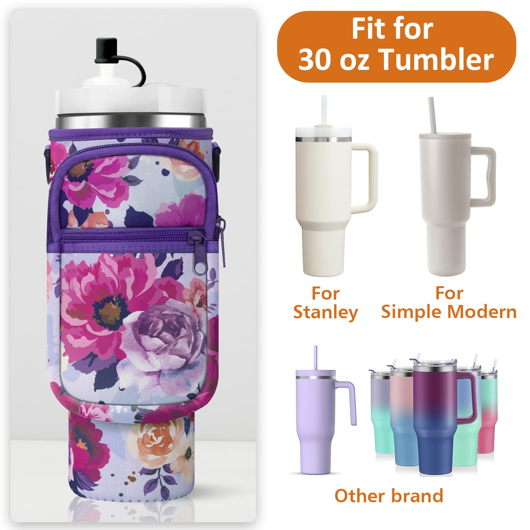 - 【Perfect for Stanley 30 oz Tumbler with Handle】The water bottle carrier is designed for Stanley 30 oz tumbler with handle, Simple Modern 30oz tumbler with handle, and other brand. It's perfect match for Stanley Quencher H2.0 30 oz and Stanley Adventure Quencher 30 oz. The snug fit of the carrier ensures that your tumbler stays securely in your car cup holder.