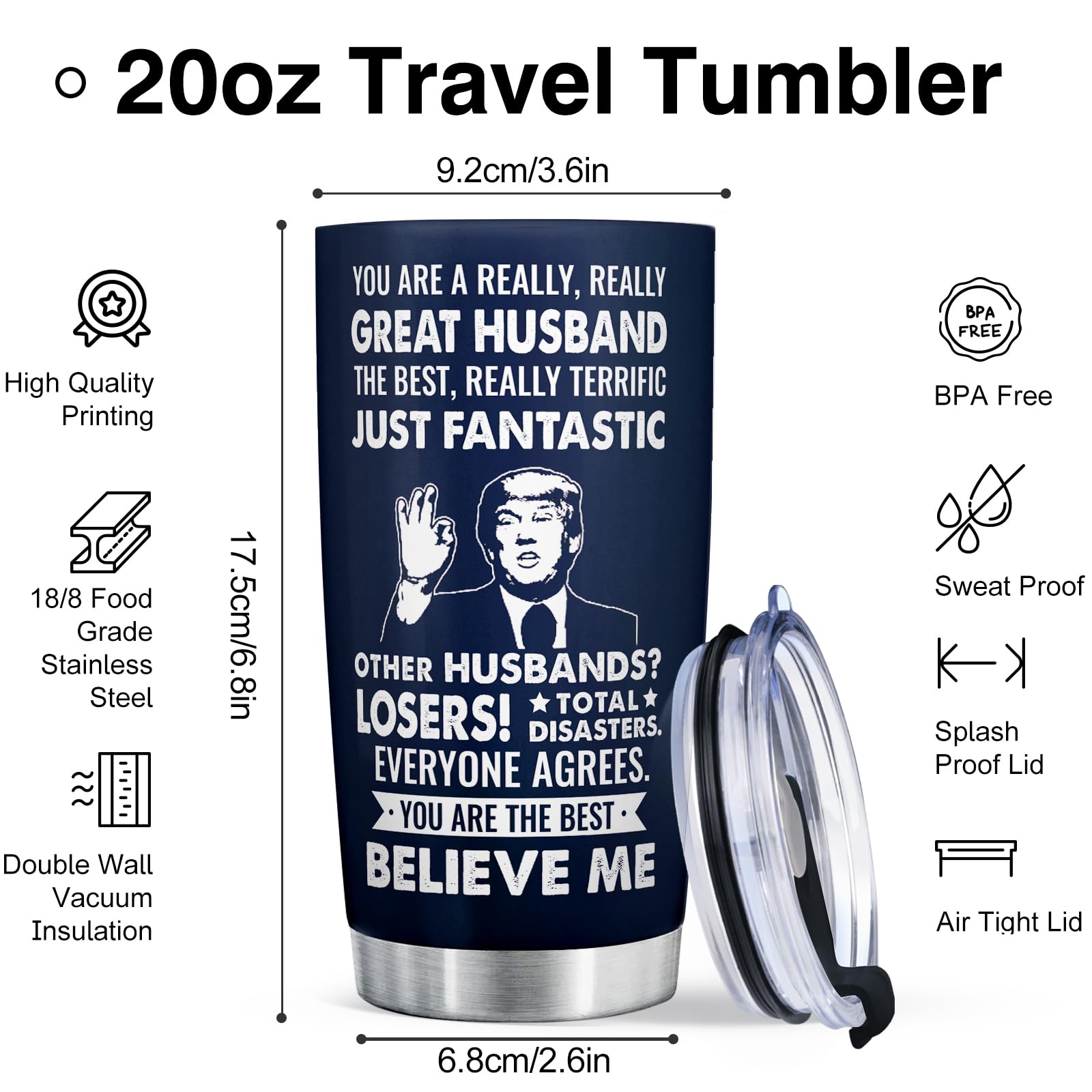- 【Premium and Practical Husband Gift】Our Aurahouse Husband tumbler cup made of 304 18/8 stainless steel. Hot or cold beverages can be kept at the ideal temperature for 6-8 hours. The lid comes with a tight rubber seal to ensure liquids do not leak out of the lid