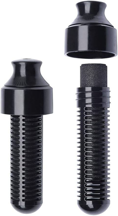 - Reusable water bottle with replaceable carbon filter