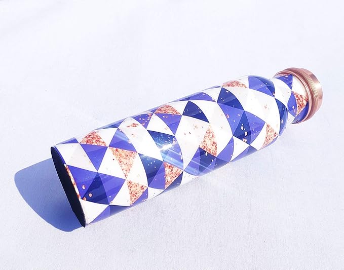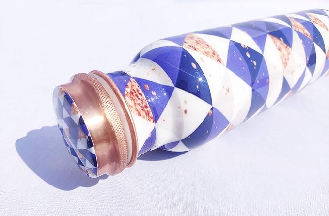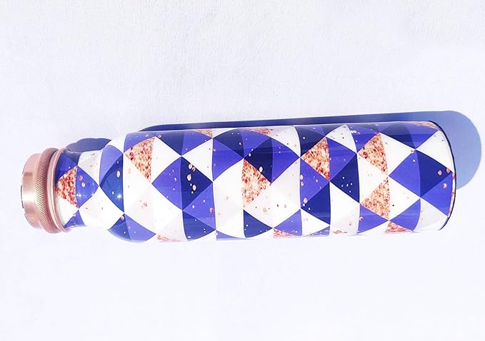 Pure Printed Copper Water Bottle - Leak Proof Ayurvedic Drinkware Copper Vessel for Sports, Gym, Outdoors, Yoga, Health Benefits (30 oz)