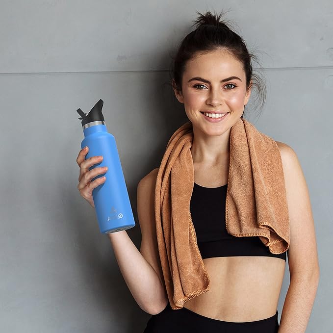 Stainless Steel Double Wall Water Bottles 20oz, Vacuum Insulated Bottle With Straw Lid, Insulated Water Bottle Keeps Water Cold for 24 Hours, Hot for 12 Hours, Hiking, Sports
