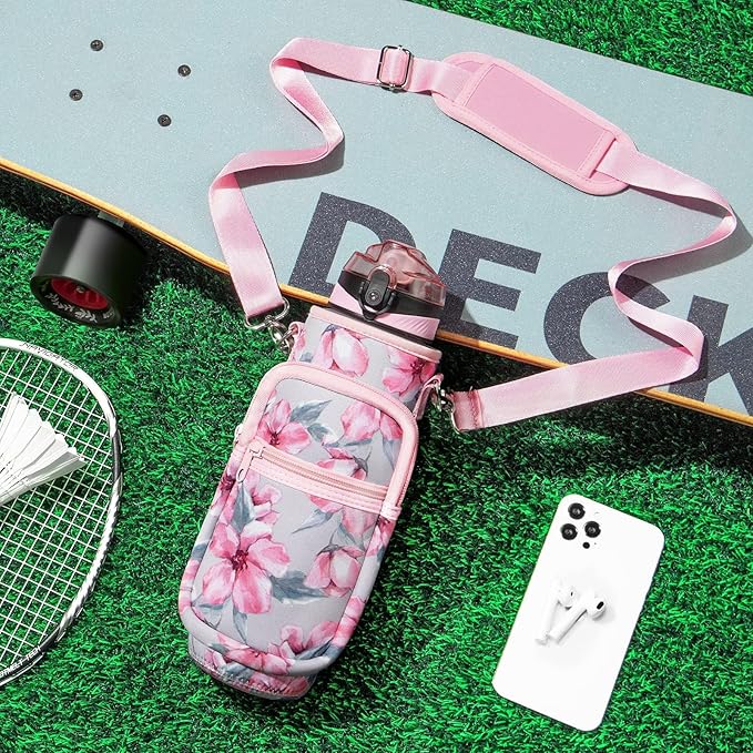 Fimibuke 32 oz Water Bottle with Sleeve - BPA Free Leakproof Sport Large 1L Plastic Motivational Water Bottle with Straw Strap & Insulated Neoprene Holder Carrier Bag Great Xmas Gift for Women Men