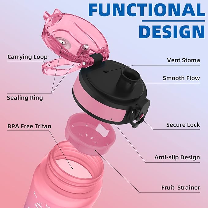 - ONE-HANDED OPERATING - A convenient way for kids to drink water is, easy enough to open the bottle. Kitart water bottles adopt a one-handed operating design, the kids only need to use their thumbs and push the button, and the cover of the lid will be turned on. It is an easier and more convenient way for kids to open the lid.
