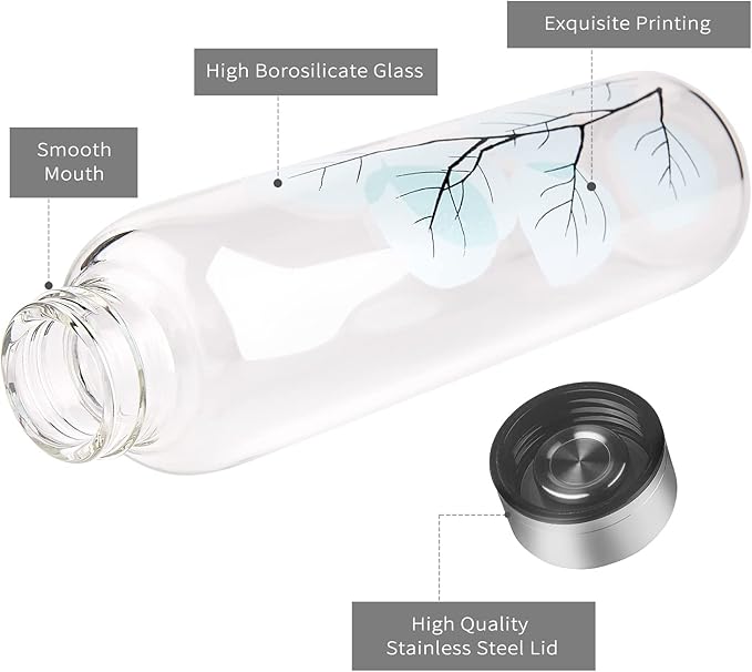 - DURABLE GLASS BOTTLE : Our water bottle is perfect for Yoga sessions, Gym days, Sport events, Cycling, Camping, Traveling, Hiking, Car journeys, Office and School.
