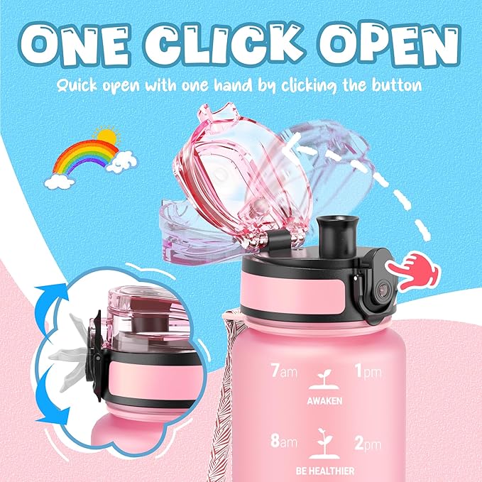- 【BEST FOR KIDS】: Specifically designed for young children to promote hydration throughout the day. The flip-top lid incorporates a safety lock to prevent dust and leaks and can be effortlessly