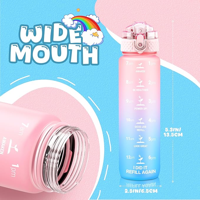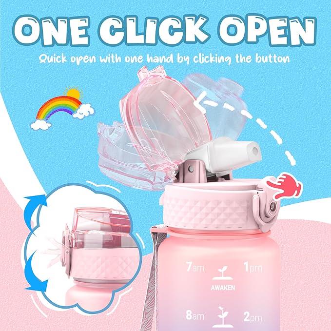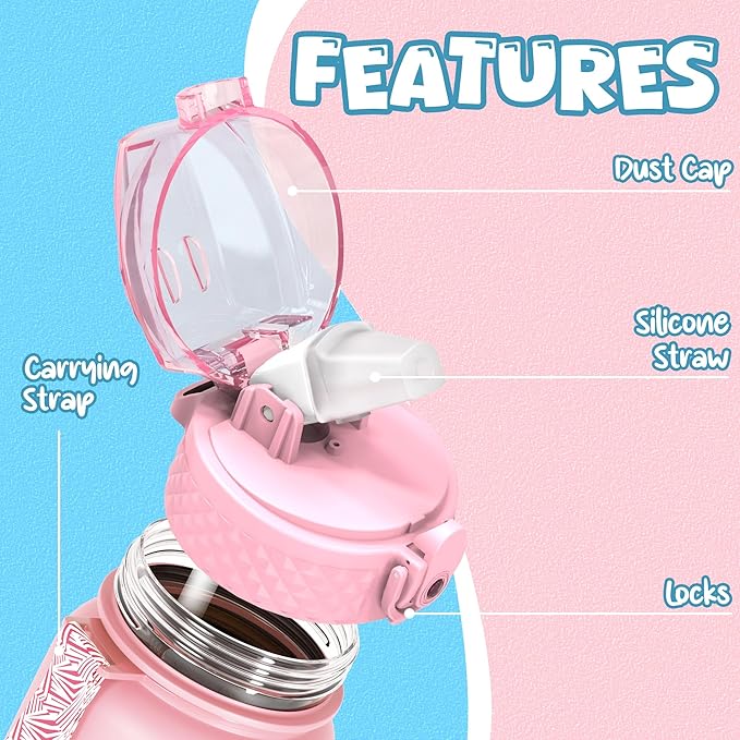 - 【Best for Kids】: Specifically designed for young children to promote hydration throughout the day. The flip-top lid incorporates a safety lock to prevent dust and leaks and can be effortlessly