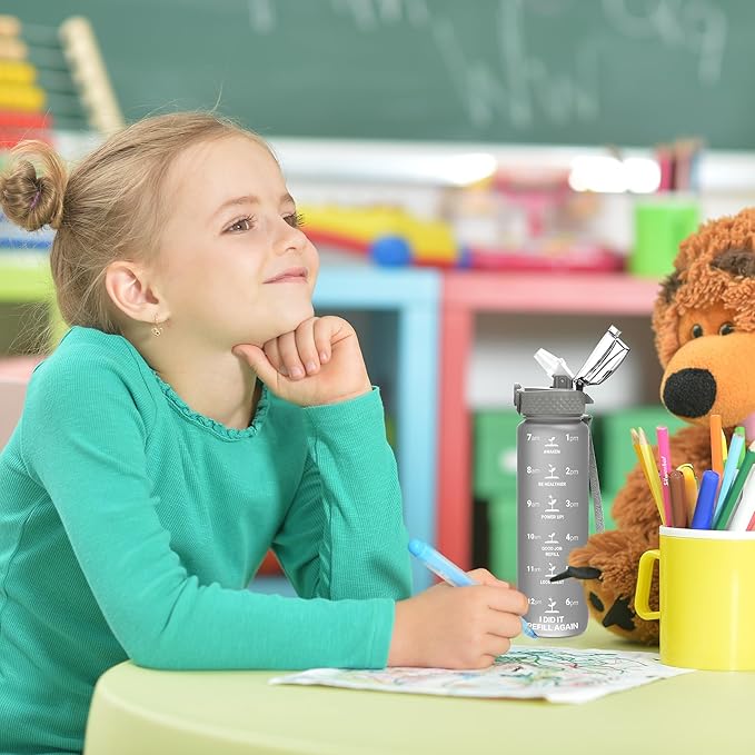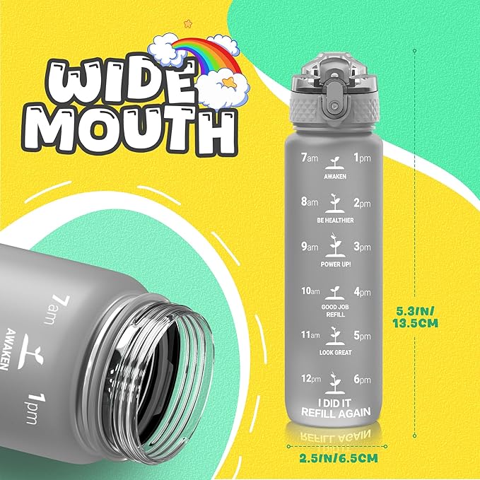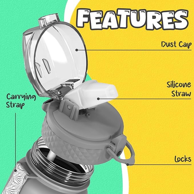 - 【Best for Kids】: Specifically designed for young children to promote hydration throughout the day. The flip-top lid incorporates a safety lock to prevent dust and leaks and can be effortlessly