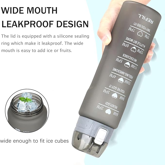- 【Motivational Quote & Time Marker】- With unique inspirational quote and time markers on it,this water bottle is great for measuring your daily intake of water,reminding you stay hydrated and drink enough water throughout the day.A must have for any fitness goals including weight loss,appetite control and overall health.