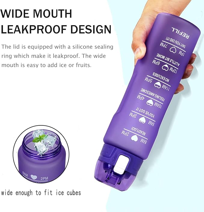 - 【Motivational Quote & Time Marker】- With unique inspirational quote and time markers on it,this water bottle is great for measuring your daily intake of water,reminding you stay hydrated and drink enough water throughout the day.A must have for any fitness goals including weight loss,appetite control and overall health.