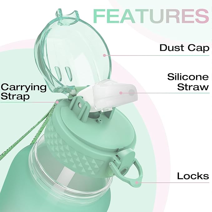 - 【Safe Spout】: The flip-up straw reveals a silicone safety spout, featuring a clever design with an anti-choking bite valve and a slow-flow opening, ensuring gentle water flow when your little one