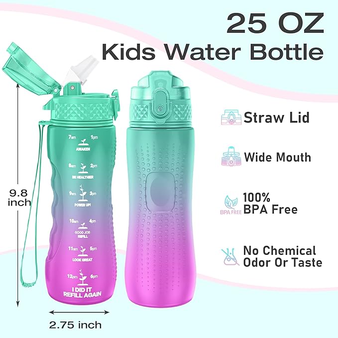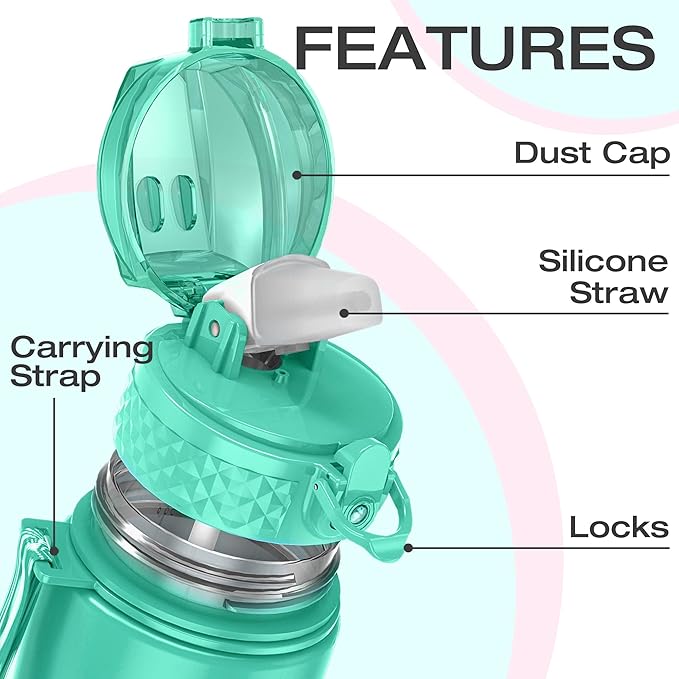- 【Best for Kids】: Specifically designed for young children to promote hydration throughout the day. The flip-top lid incorporates a safety lock to prevent dust and leaks and can be effortlessly