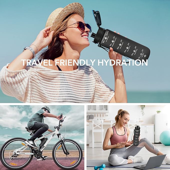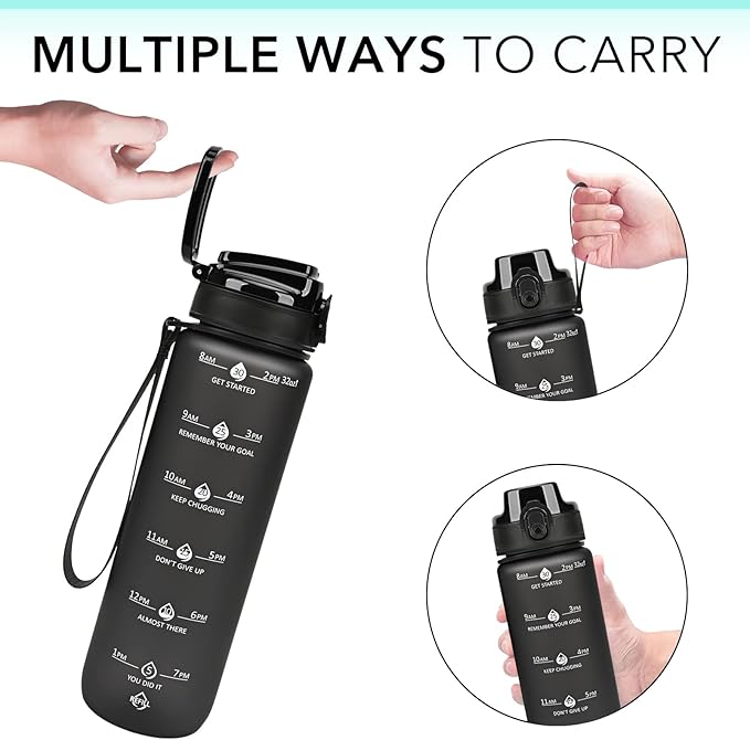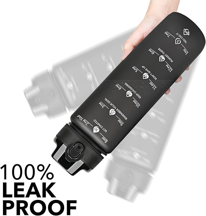 - Motivational Quote and Time Marker: 32 oz water bottle with inspirational quote and time marker on it, reminding you to stay hydrated. And helps you reach daily health and fitness goals.