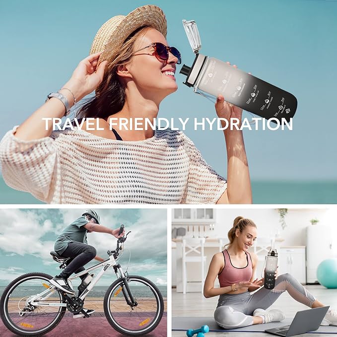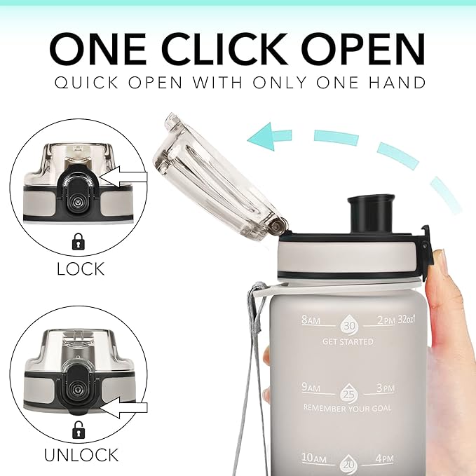 - Motivational Quote and Time Marker: 32 oz water bottle with inspirational quote and time marker on it, reminding you to stay hydrated. And helps you reach daily health and fitness goals.