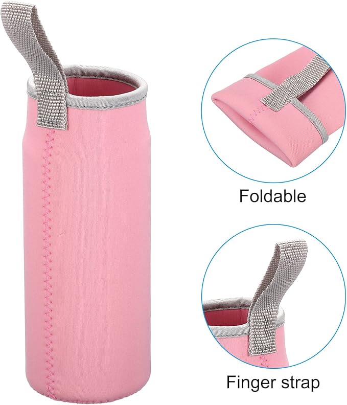 PATIKIL 65mmx180mm Water Bottle Sleeve, 4 Pack Neoprene Insulated Bottle Bag Holder Carrier Pouch with Finger Strap, Pink