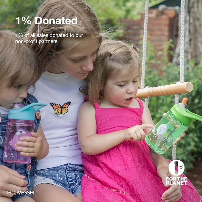 EcoVessel SPLASH Tritan Plastic Kids Water Bottle with Straw, Leak Proof Flip Top Lid, and Carry Handle Kids Cups Sports Water Bottle Sippy Cups 12 oz (Storybook)