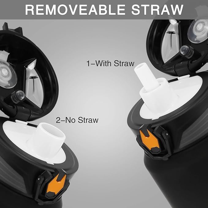 - [ ONE LID FOR 2 DRINKING WITH REMOVEABLE STRAW ] As this PHIXTON 32oz water bottle is equipped with a removable straw, it can be used as a water bottle with straw or a no straw water bottle depending your needing. It is fast water flaw without straw, suitable for men or boy, with a straw, you donβt need to raise the water bottle,it is suitable for women,girl.