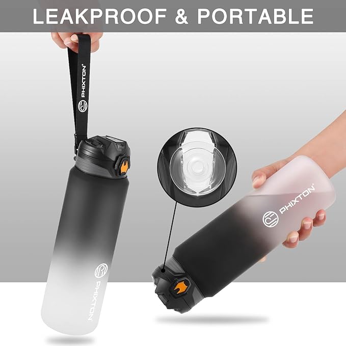 - [ SAFE NON-TOXIC TRITAN & DURABLE ] The PHIXTON 32 oz Water Bottle is made of high-quality food-grade environmentally friendly reusable Tritan co-polyester plastic, 100% BPA free and Toxin free, there is no harmful chemicals, plastic taste or bad smell, ensuring healthy drinking. It is also resistant to fall and not easily broken as it is much thick than ordinary. Suitable for both warm and cold beverages (-50 to 205Β°F)