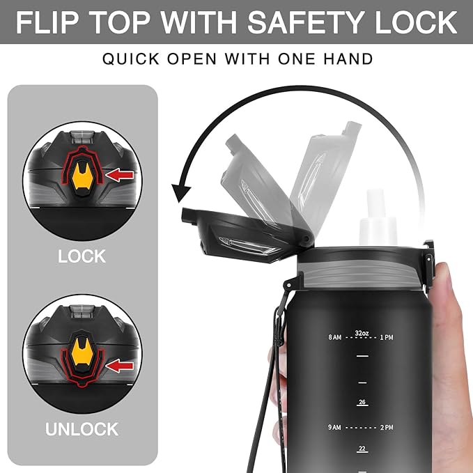 - [ LARGE CAPACITY 32OZ WITH TIME MAKER ] This PHIXTON translucent Water Bottle is 32 oz of large capacity, with time maker and capacity maker, it will tell you when to take your next sip throughout the day, stay hydrated and drink enough water, better achieve fitness goals, such as weight loss, appetite control, and overall health