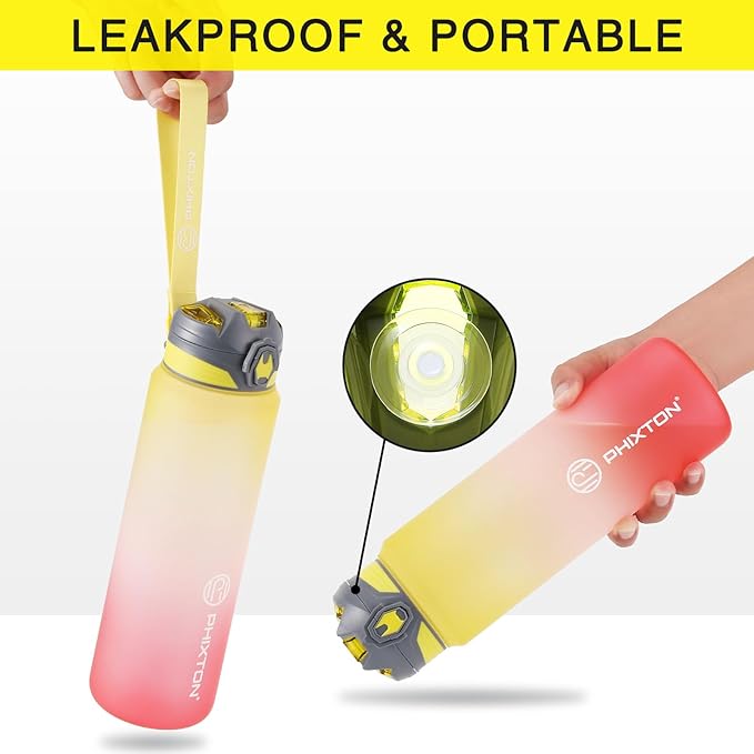 - [ SAFE NON-TOXIC TRITAN & DURABLE ] The PHIXTON 32 oz Water Bottle is made of high-quality food-grade environmentally friendly reusable Tritan co-polyester plastic, 100% BPA free and Toxin free, there is no harmful chemicals, plastic taste or bad smell, ensuring healthy drinking. It is also resistant to fall and not easily broken as it is much thick than ordinary. Suitable for both warm and cold beverages (-50 to 205Β°F)