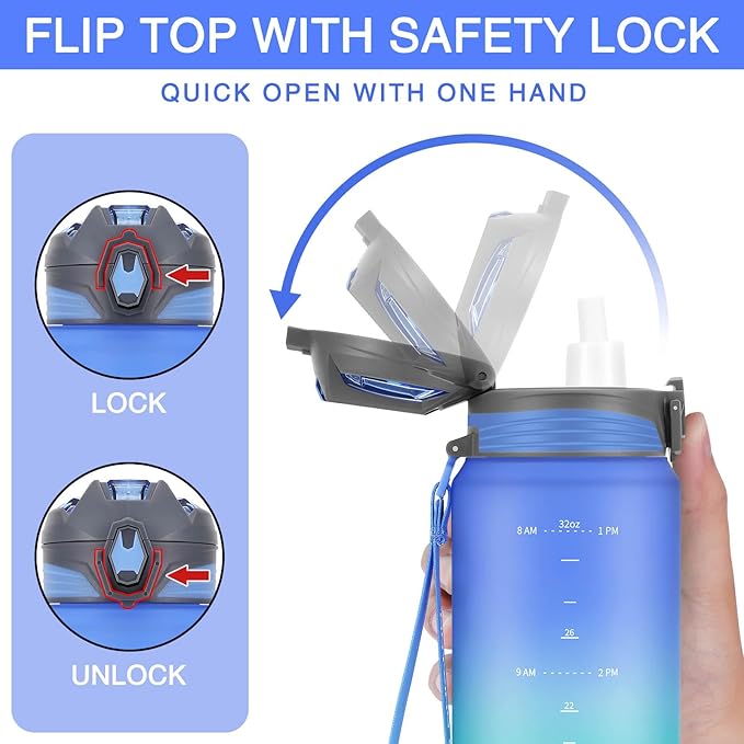 - [ LARGE CAPACITY 32OZ WITH TIME MAKER ] This PHIXTON translucent Water Bottle is 32 oz of large capacity, with time maker and capacity maker, it will tell you when to take your next sip throughout the day, stay hydrated and drink enough water, better achieve fitness goals, such as weight loss, appetite control, and overall health