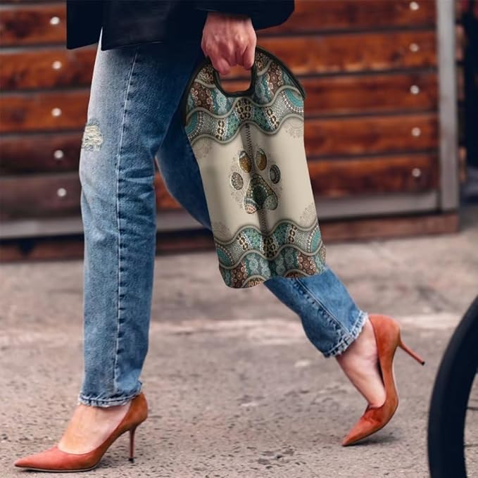 doginthehole 2 Bottle Wine Carrier Travel Bag Boho Dog Paw Print Thick Insulated Neoprene Wine Tote Portable Champagne/Water Bottle/Beer/Drinks Carrying Bag for Travel, Picnic, Party