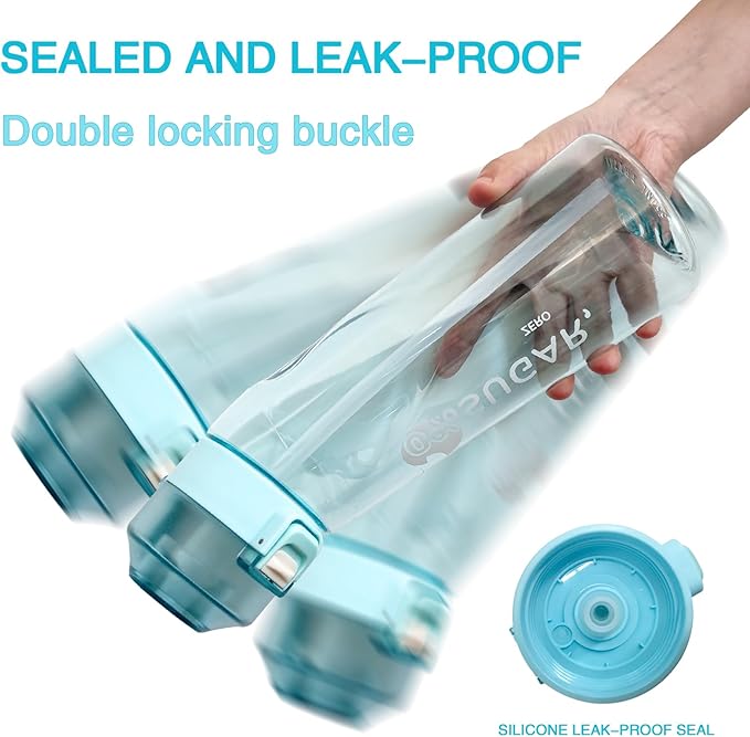 650ML Tritan Plastic Water Bottle, Leak Proof Sports Bottle with Straw, Includes 7 Flavor Pods, for Outdoor Sports, Hiking, Camping, Backpacking (Blue)