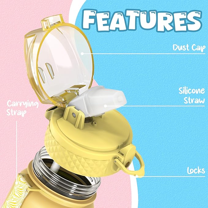 - Safe Design: Features a flip-up straw with a silicone bite valve and slow-flow opening for safety.