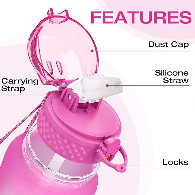 - 【Best for Kids】: Specifically designed for young children to promote hydration throughout the day. The flip-top lid incorporates a safety lock to prevent dust and leaks and can be effortlessly