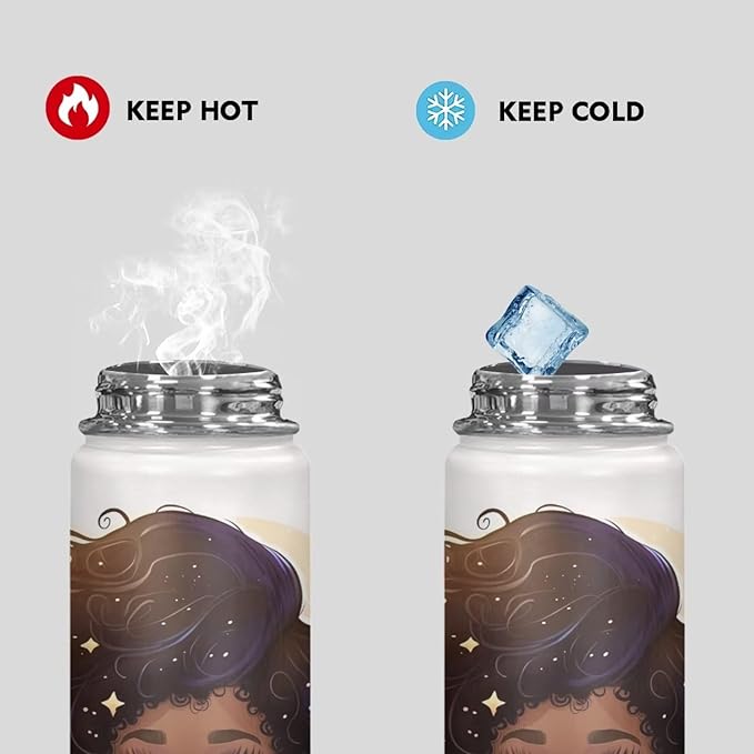 ZOUTAIRONG American Girl Insulated Water Bottle 20 oz Stainless Steel Bottle Reusable Wide Mouth Afican Water Bottle with Handle Thermal Mug Sports Water Bottles for Workout, Bike, Outdoor
