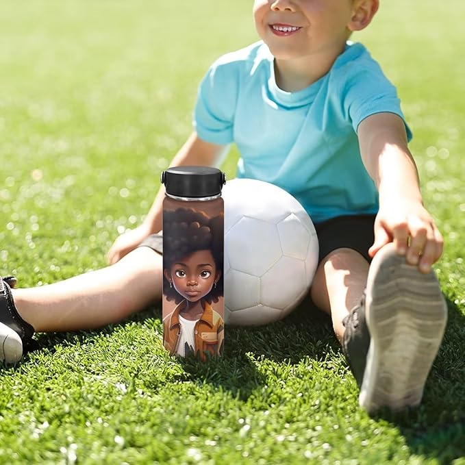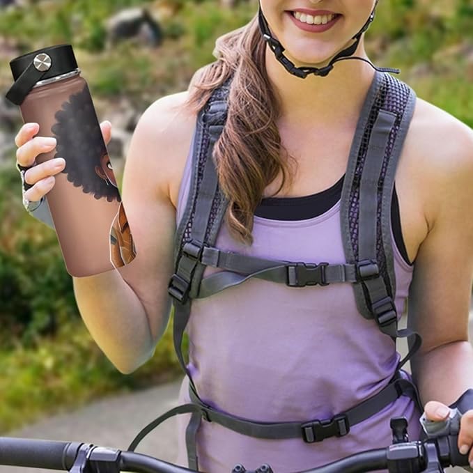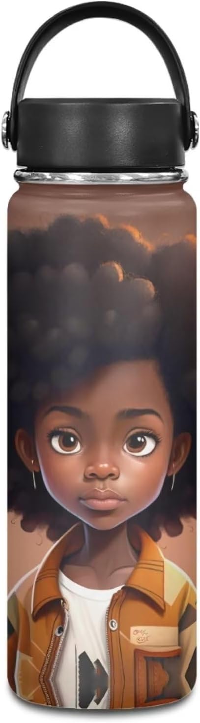 African Stainless Steel Water Bottle with Handle Vacuum Insulated Water Bottles 20 oz Metal Flask Afro American Travel Cup Coffee Mug Wide Mouth Bottle Leak Proof Reusable