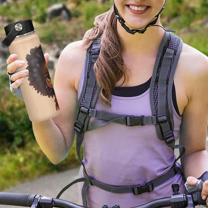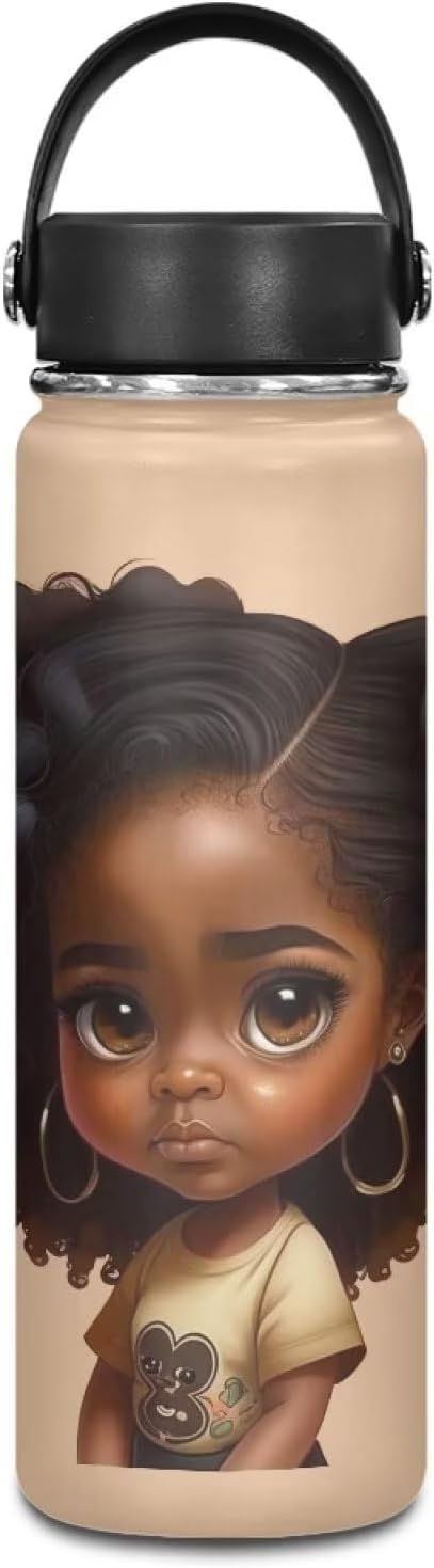 ZOUTAIRONG African Girl 20 oz Insulated Water Bottle with Handle Stainless Steel Sports Water Flask Cup Portable Handle Lid Hot and Cold Water Bottle Magic American Afro Travel Canteen Mug