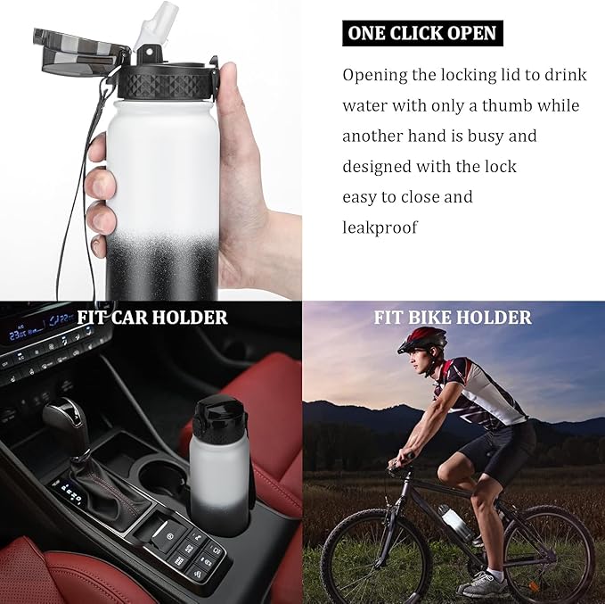 GOPPUS 20oz Insulated Stainless Steel Water Bottle with Straw Lid Leakproof Water Flask, Keeps Hot and Cold Sports Canteen Water Bottles for Kids Men Women Gym (White Black 1 Lid)