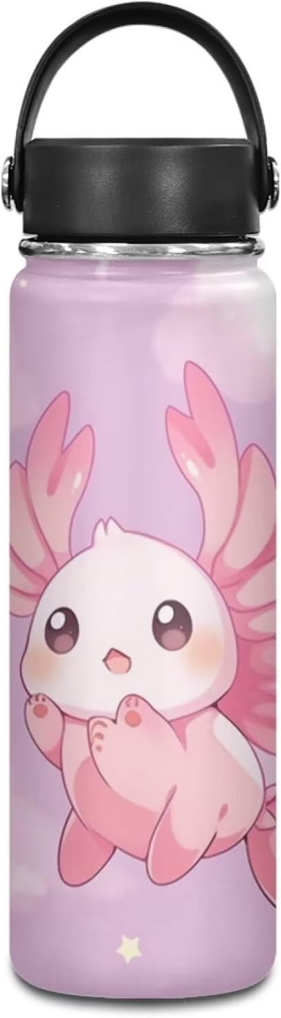 Axolotl Insulated Water Bottle 20 oz for Girls Water Bottles for Travelling, Camping, Cycling Water Bottle Vacuum Cup Reusable Water Bottle Kids Gifts Animal Pink