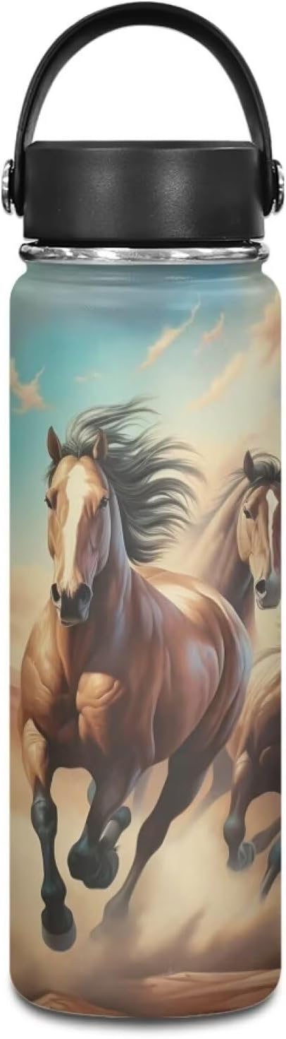 ZOUTAIRONG Trendy Horse Water Bottle Insulated 18 Oz Sport Stainless Steel Water Bottles for Travel Camping Hiking Biking Water Jug Kids Adult Wide Mouth Vacuum Thermal Bottle