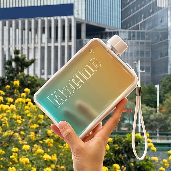 - 5- Versatile for Your Daily Needs: Not just your average clear flask, but a multitasking flat water bottle for travels and beyond, our A5 water bottle has no limits; Ideal as a camping water bottle, compact water bottle for backpack side pocket, bag water bottle for school trips, or a pretty water bottle for gym - endlessly practical, our Gradient White water bottle has it all