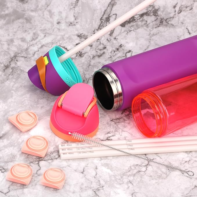 • Package Contents: The package contains 4 pieces of pink water bottle stopper replacements, and 4 pieces of white replacement straws with graduations and a straw cleaning brush.
