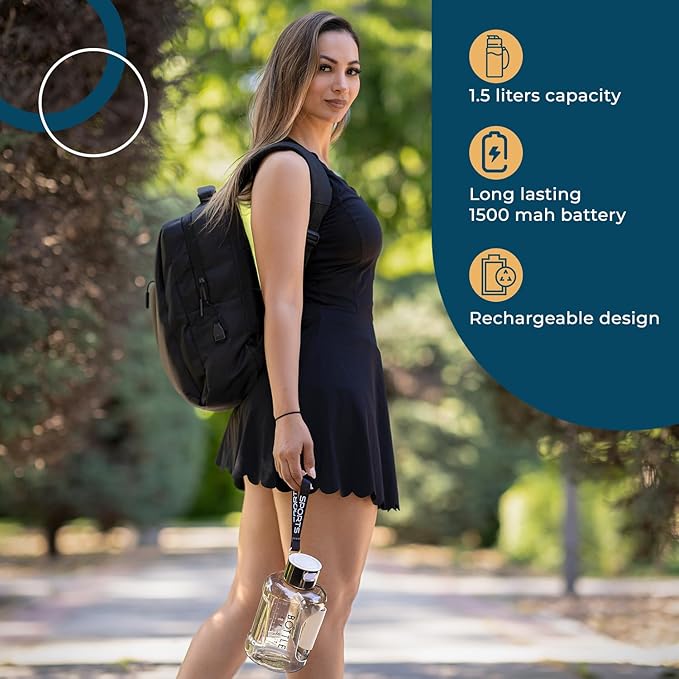 50oz | 1.5L Hydrogen Water Bottle Generator | Latest 2024 SPE PEM Technology | Leakproof | Sports Bottle Jug and Handle | Tritan BPA Free Plastic (Black)