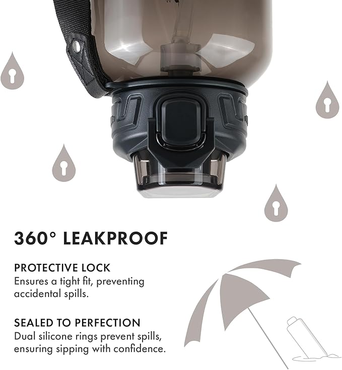 - Lock in Confidence - Bid farewell to spills with the protective lock and dual silicone rings of our Tritan sports bottle. The innovative design ensures a tight fit, preventing accidental spills, providing confidence for focused activities. Perfect kids water bottle for school, gym accessories for men and water bottle for women.