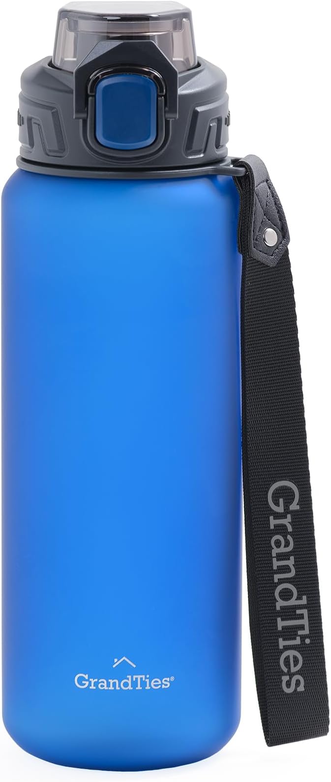 GRANDTIES Sports Tritan Plastic Water Bottle with Straw, Removable – Leakproof BPA Free Dishwasher Safe Travel Water Bottle with Strap for Gym, Outdoor, Fitness (Frosted Navy, 28oz (800mL))