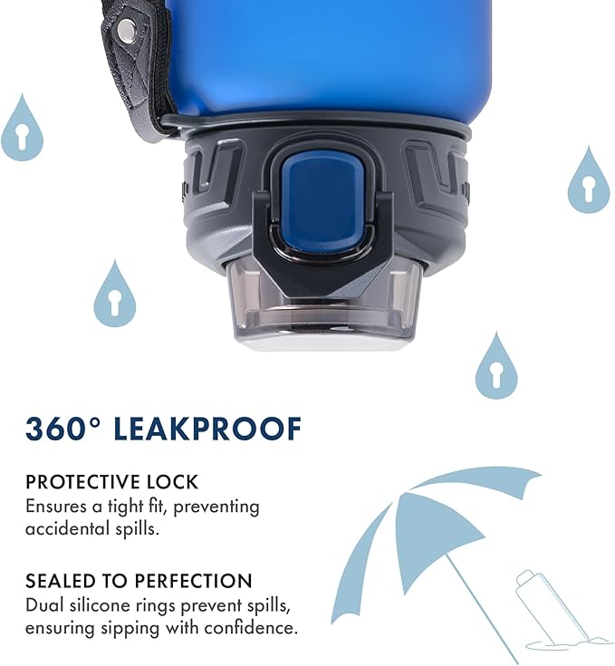 - Lock in Confidence - Bid farewell to spills with the protective lock and dual silicone rings of our Tritan sports bottle. The innovative design ensures a tight fit, preventing accidental spills, providing confidence for focused activities. Perfect kids water bottle for school, gym accessories for men and water bottle for women.