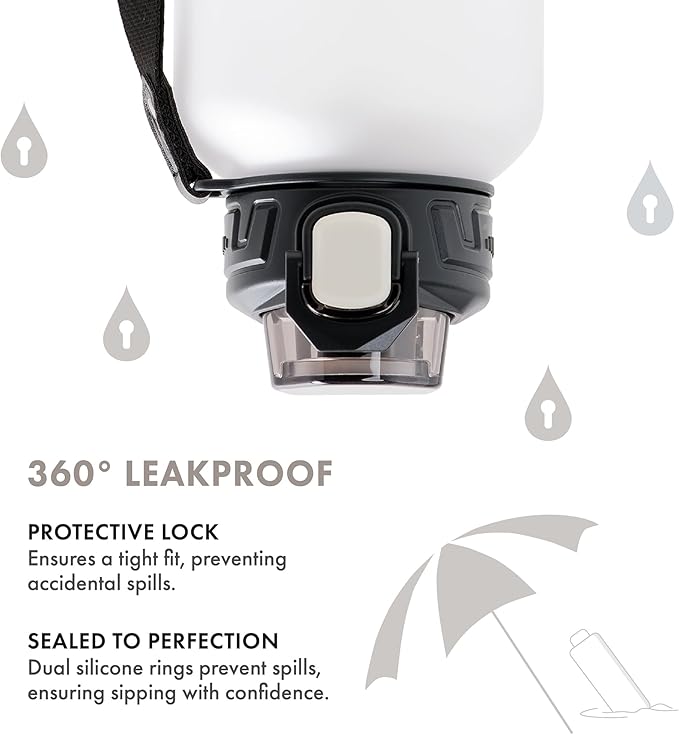 - Lock in Confidence - Bid farewell to spills with the protective lock and dual silicone rings of our Tritan sports bottle. The innovative design ensures a tight fit, preventing accidental spills, providing confidence for focused activities. Perfect kids water bottle for school, gym accessories for men and water bottle for women.