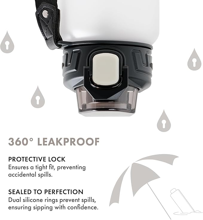 - Lock in Confidence - Bid farewell to spills with the protective lock and dual silicone rings of our Tritan sports bottle. The innovative design ensures a tight fit, preventing accidental spills, providing confidence for focused activities. Perfect kids water bottle for school, gym accessories for men and water bottle for women.
