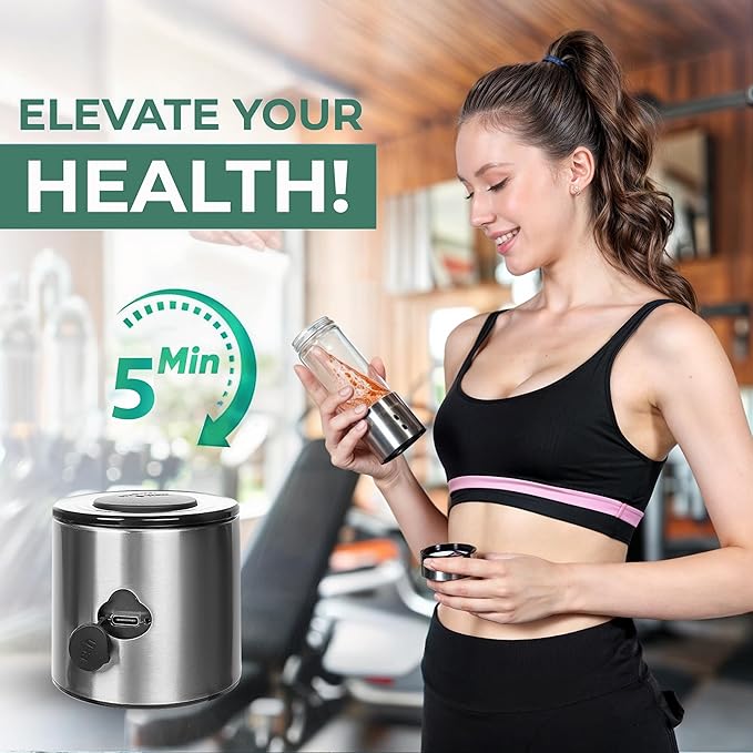 - H2 Hydrogen Water Bottle: Made from medical-grade stainless steel and high-quality glass, the water ionizer bottle ensures durability, safety, and a sleek, modern look, perfect for health-conscious individuals and wellness enthusiasts.