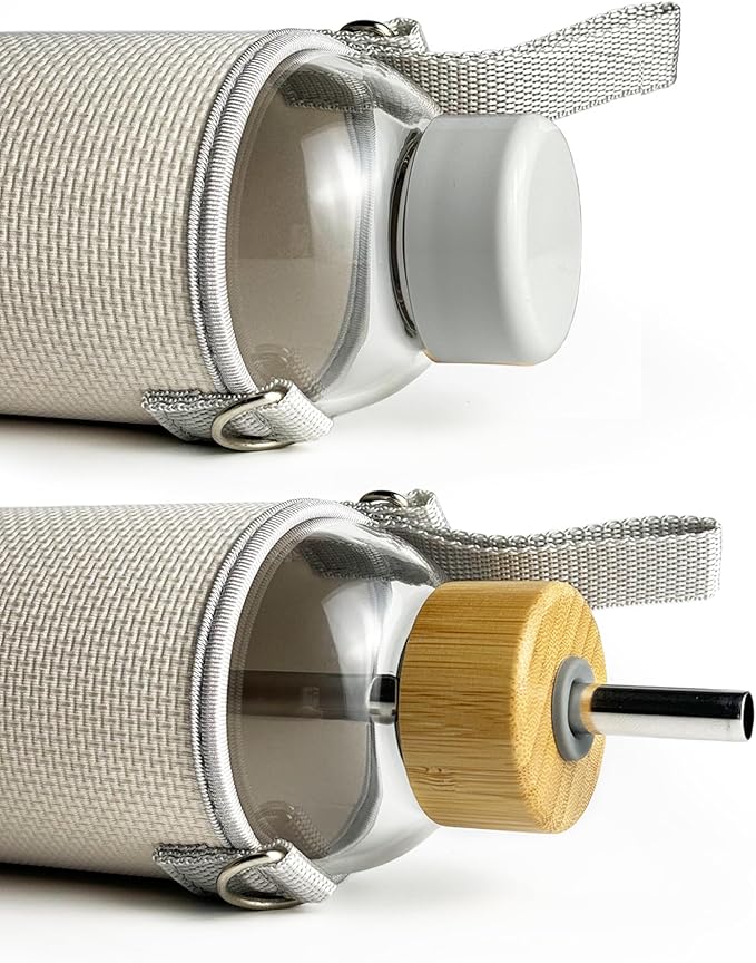 - Enhanced Grip and Safety: The neoprene cover features textured patterns for improved grip, reducing the risk of slips or spills. The silicone sleeve at the bottom of the stainless steel straw adds an extra layer of protection, safeguarding the glass bottle against impact damage.