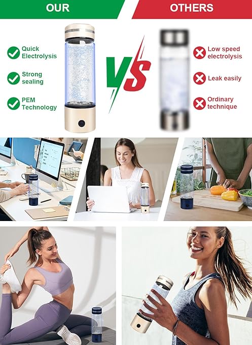 - ☑︎ANTIOCIDANT SUPPORT: Hydrogen-rich water may help neutralize harmful free radicals in the body, promoting overall wellness and vitality. The smaller size of hydrogen molecules allows for faster and deeper cellular hydration, keeping you feeling refreshed and energized. Incorporate hydrogen water into your post-workout routine to support faster recovery and muscle relaxation.