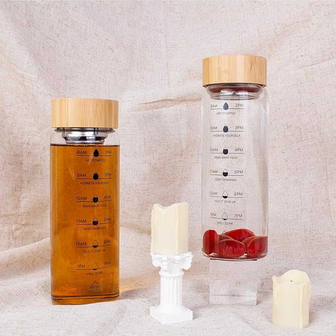 - Stay Hydrated: Our 25oz borosilicate glass water bottle reminds you to stay hydrated throughout the day. Crafted from high-quality materials, it delivers a pure taste, keeping you refreshed and energized!