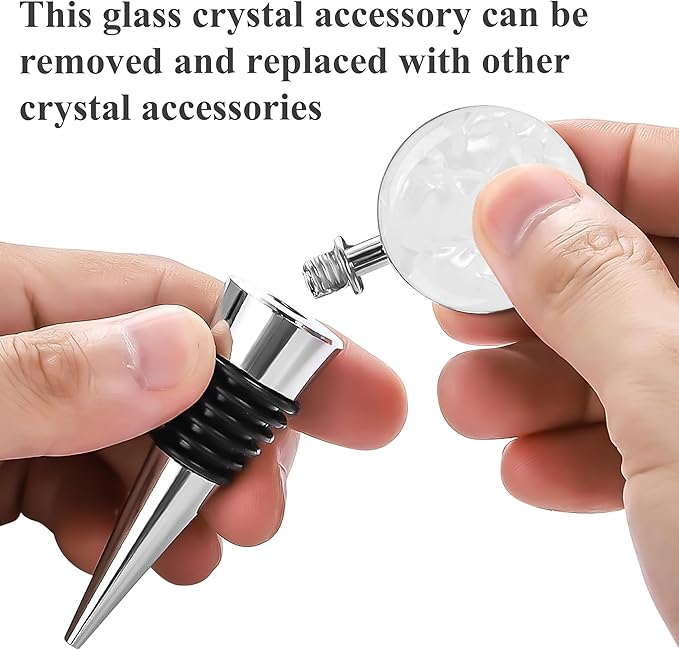- Wine bottle stoppers feature a round shaped of topper with some designs, a plated shaft and flexible rubber gaskets,different patterns that is a great way to help you or your guest spot which bottle is which on the party or gathering.